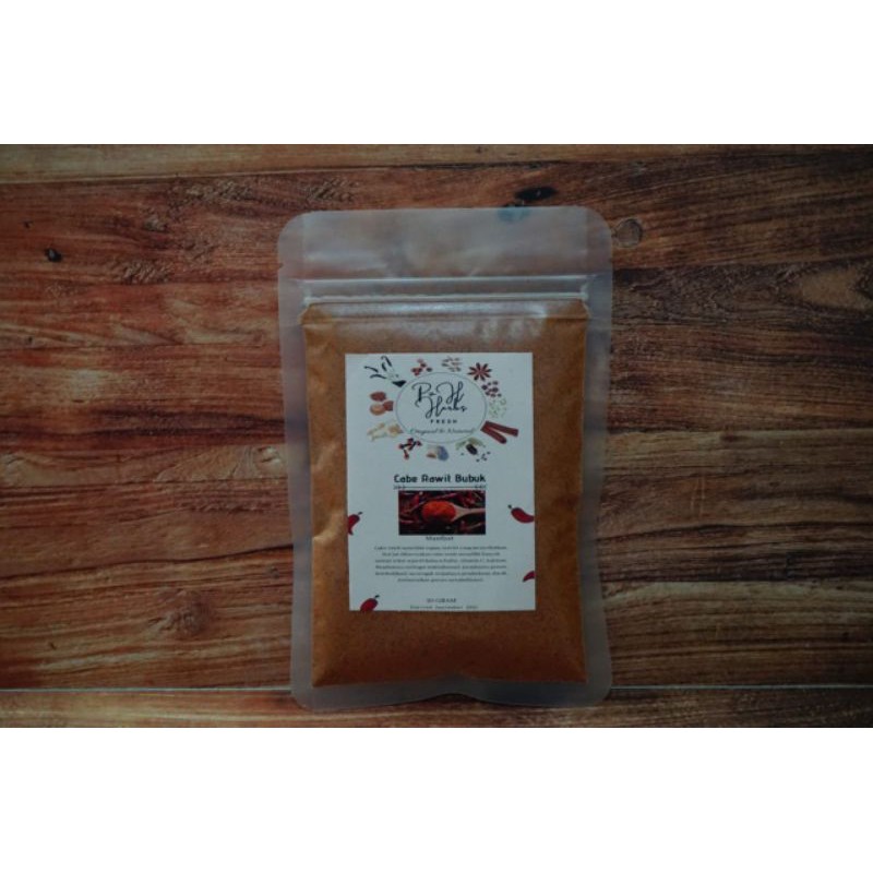 Cabe rawit (capsicum annuum bird’s eye) atau cayenne pepper memiliki rasa pedas serta bersifat panas, sering digunakan untuk bumbu dapur dan memilik asupan vitamin c & a. Dihaluskan secara hygienis dan bubuk awet serta tahan lama untuk segala keperluan.