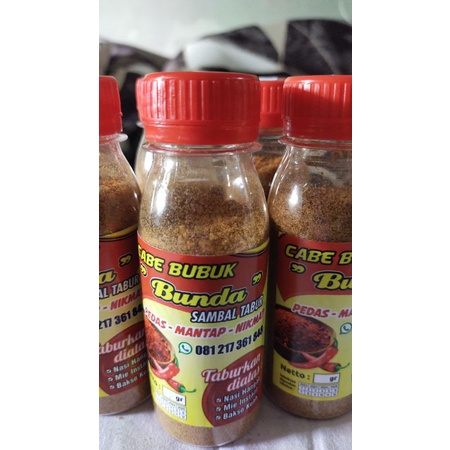 Cabe Bubuk BUNDA diproses dengan bahan pilihan dan dijamin keAsliannya dari Cabe pilihan yg berkwalitas sangat bagus ..dijamin tanpa campuran bahan apapun yg membahayakan kesehatan.