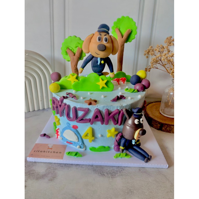 Basic Vanilla sponge cake dilapisi slai strawberry/blueberry dengan lapisan luar buttercream dan hiasan fondant
