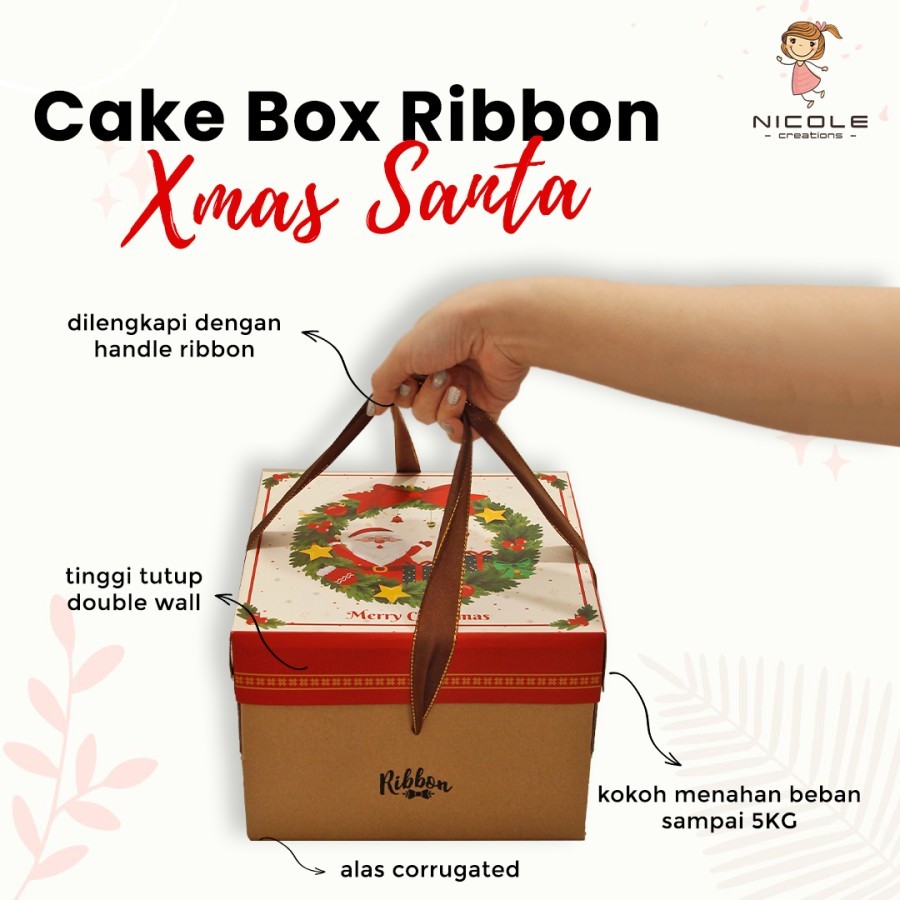 Cake Box Ribbon Xmas Santa / Packaging Kue / Cake Box Christmas