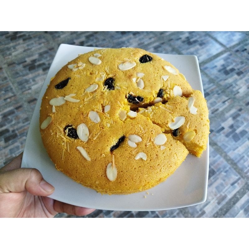 Cake Labu terbuat dari campuran labu pilhan dan ditabur kismis n kacang almond diatasnya. Asli lembut banget ini kue, manisntmya pas.