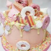 Cake ini terbuat dari bahan dasar strobery dihias toping