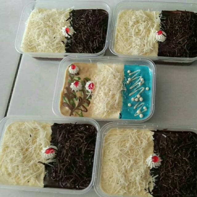 Brownis lembut dilapisi selai strawberry dan whipe cream serta disiram topping lumer dan ditabur topping padat❤❤