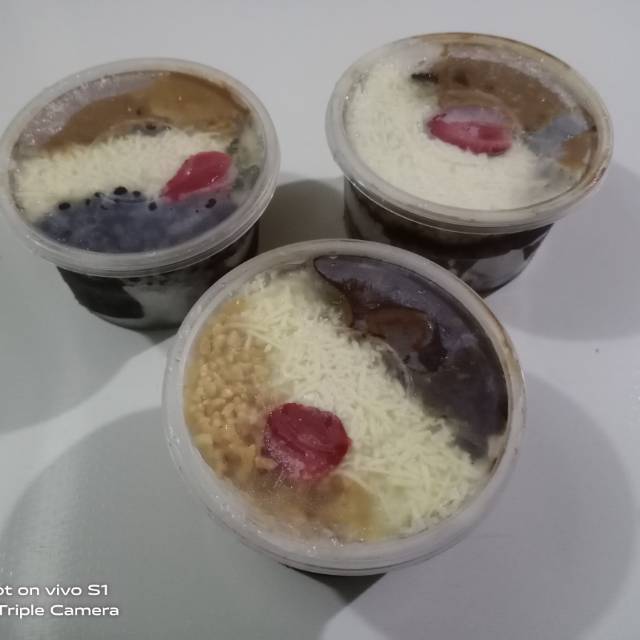 Di taburi parutan keju juga toping buah strawbery