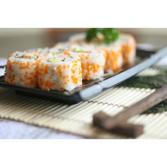 Crab Meat ,Kyuri,Tanuki Sushi Roll Topped With Tobiko. ( Isi 8 Potong, Matang)