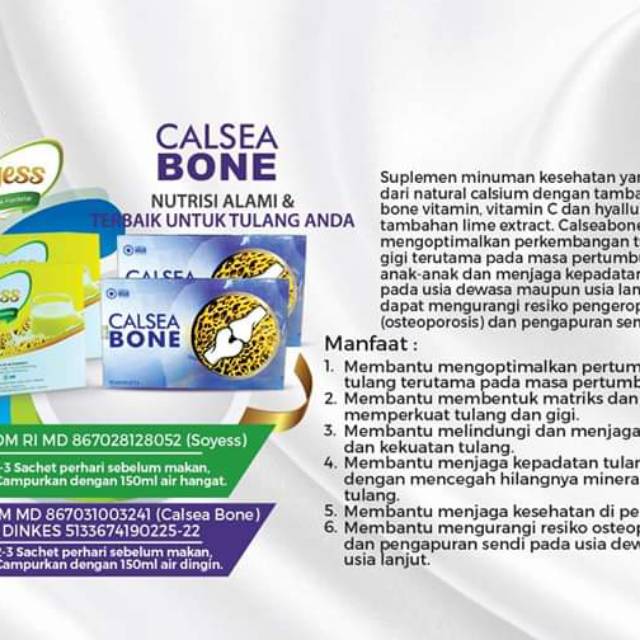 #Calseabone merupakan minuman suplemen calsium yang berasal dari algae merah Lithothamnion sp. yang dipanen didasar laut atlantik utara yang bebas polusi, kaya akan minera, memiliki bio- aktif kalsium dan magnesium (+72 Trace mineral) manfaat mengoptimalkan pertumbuhan tulang, memperkuat tulang, menjaga struktur, menjaga kepadatan tulang dan mengurangi risiko osteoporisis