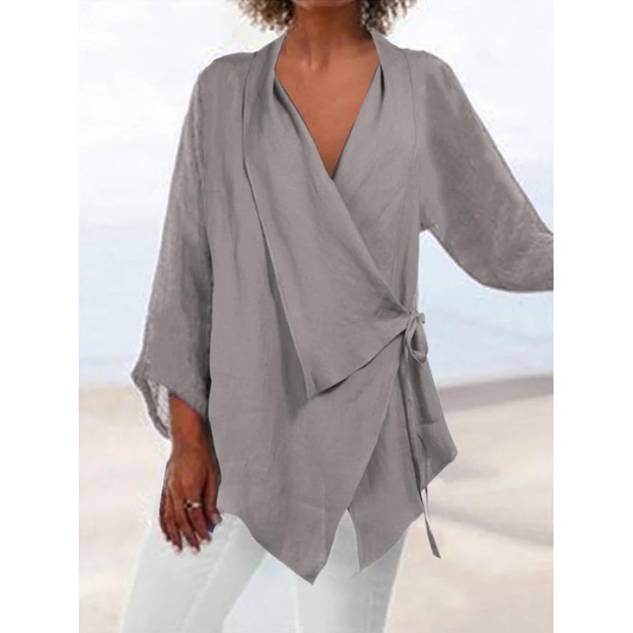 Camicetta Casual In Lino Con Lacci Tinta Unita