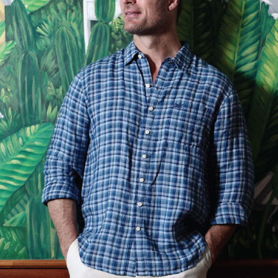 Camicia A Quadri In Lino A Maniche Lunghe Con Risvolto Da Uomo