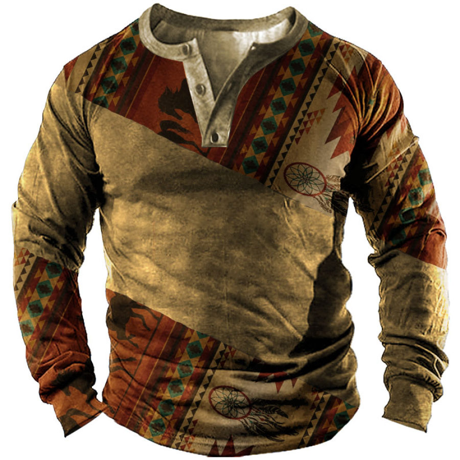 magliette e camicie,camicia da uomo a maniche lunghe henley azteca