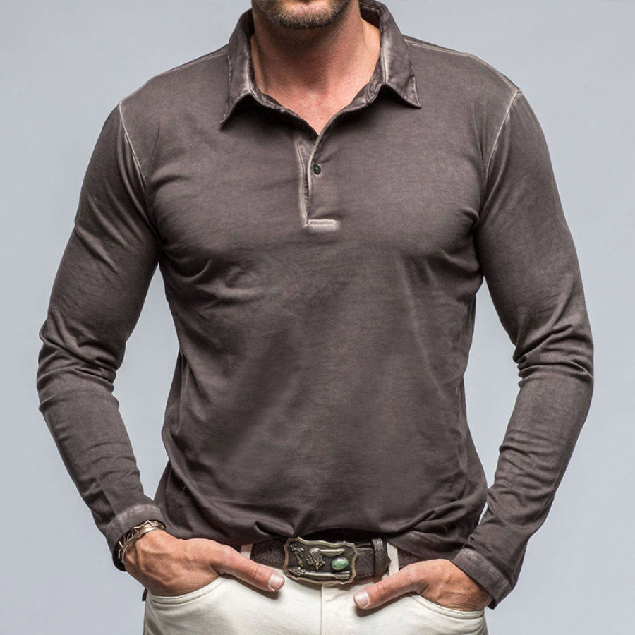 magliette e camicie,camicia polo da uomo a maniche lunghe con fondo invecchiato retrò