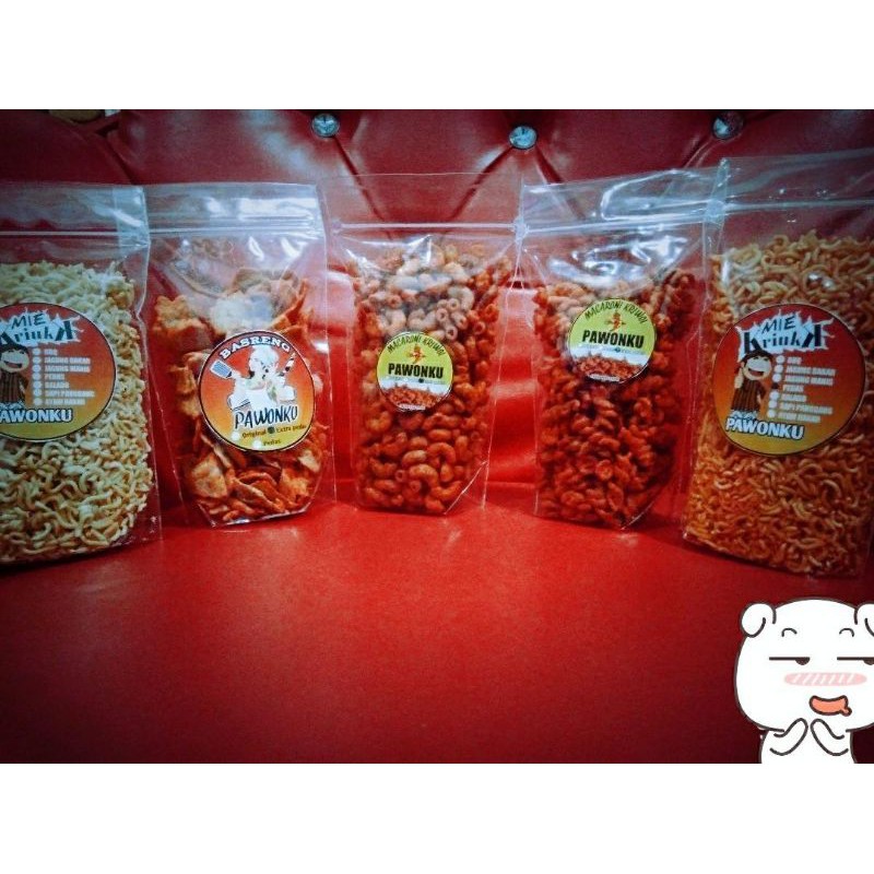 aneka camilan kemasan besar.silahkan pilih ada basreng,sosis,makroni bantet dll silahkan pilih pesanan pada kolom keterangan.kualitas dijamin selalu baru ENAK gurih dan renyah