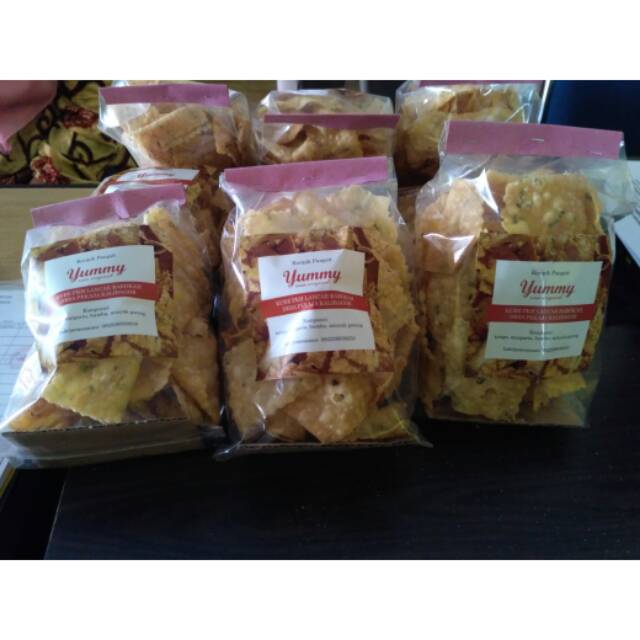 Jual camilan keripik pangsit.