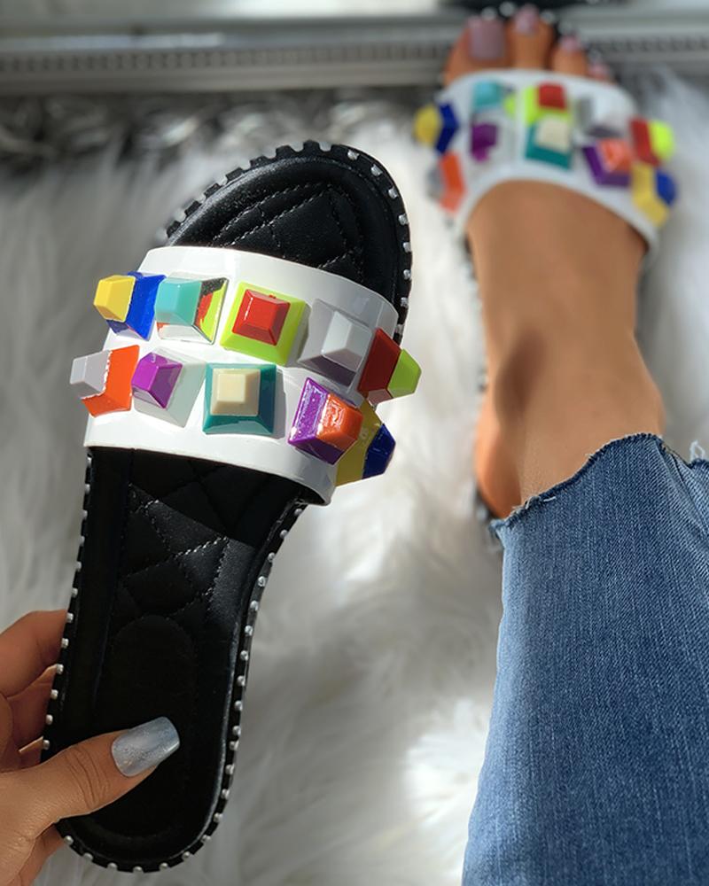 Candy Color Rivet Detail Flat Slider Sandals, White