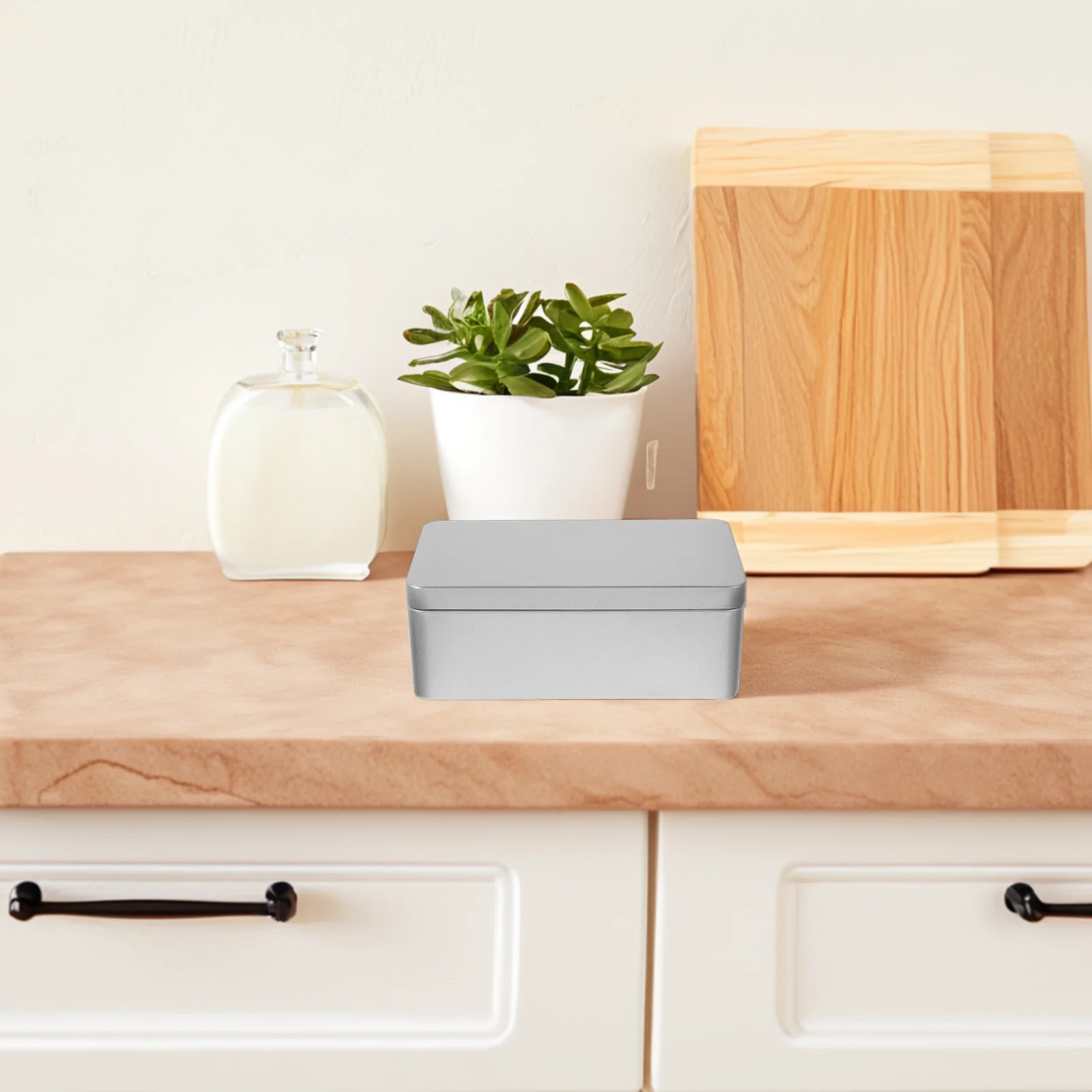Candy Rectangular Food Tin Empty Silver Storage Container Jewelry Organizer Kitchen