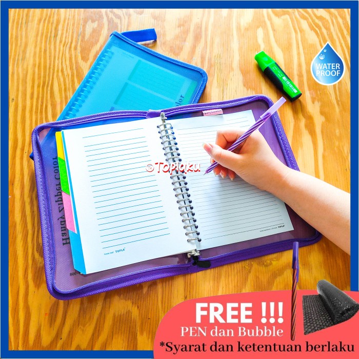 Premium Binder Notebook Topla dibuat dengan rupa warni transparan yang terlihat elegan dan berkelas.