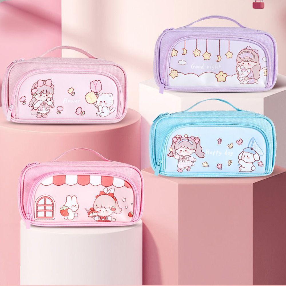 Canvas Pencil Box Large Capacity Pen Case Girls Pencil Case Students