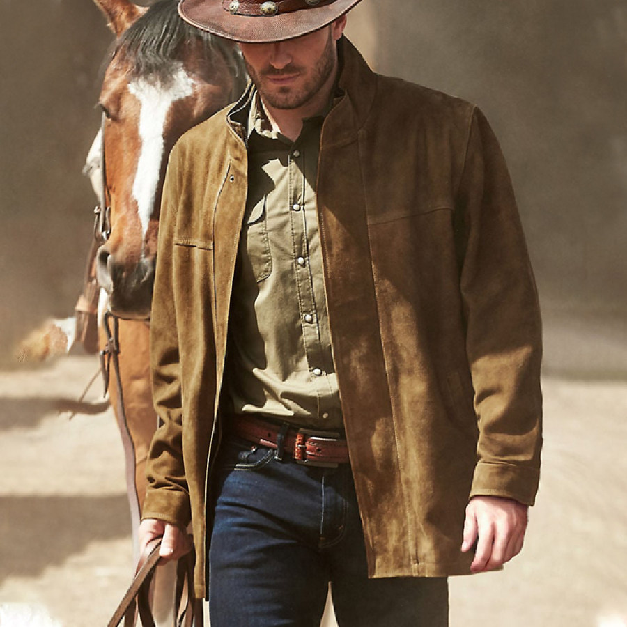 cappotti e giacche,cappotto in pelle da uomo con fodera trapuntata rimovibile in pelle scamosciata di capra marrone