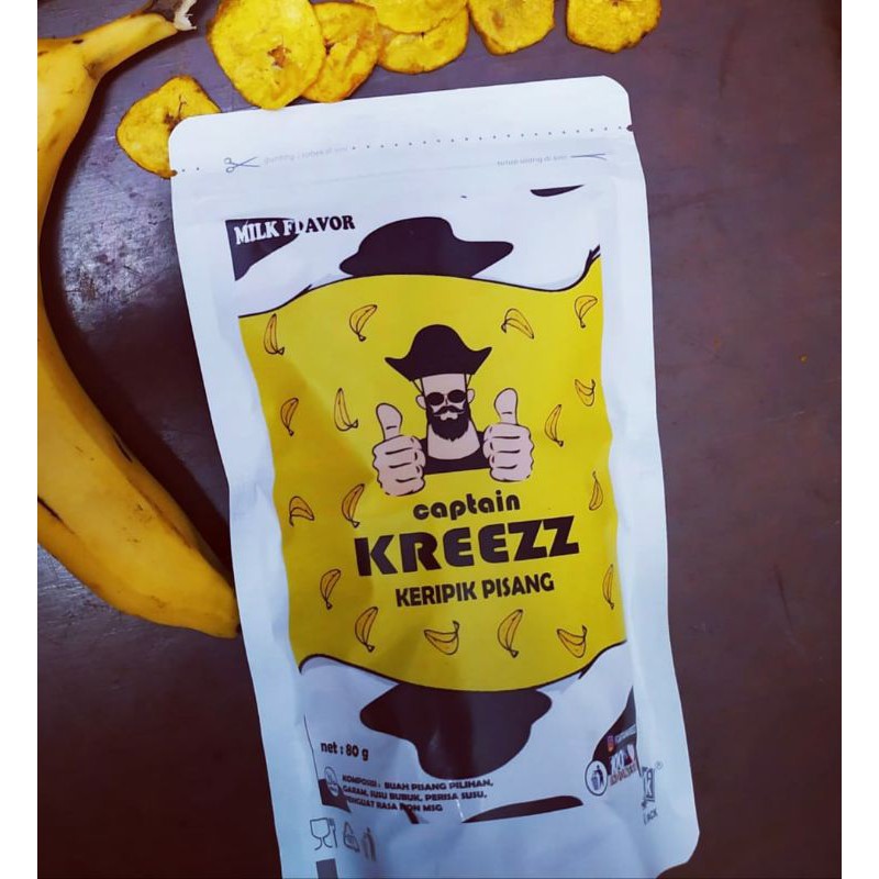 Captain kreezz merupakan kripik pisang classy yang terbuat dari buah pisang pilihan , diiris tipis tipis kemudian diracik dengan bumbu special yang membuatnya kriuk dan rasanya bikin nagih