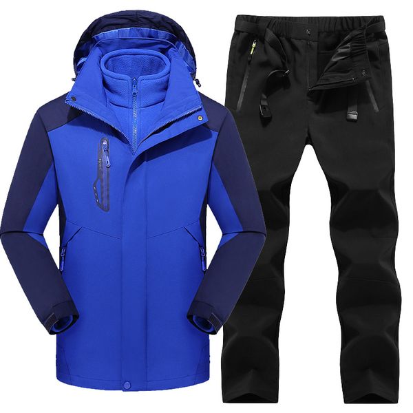 outdoor autumn and winter outdoor jacket and trousers set men women couples emergency underwear mountaineering brushed t, Blue;black