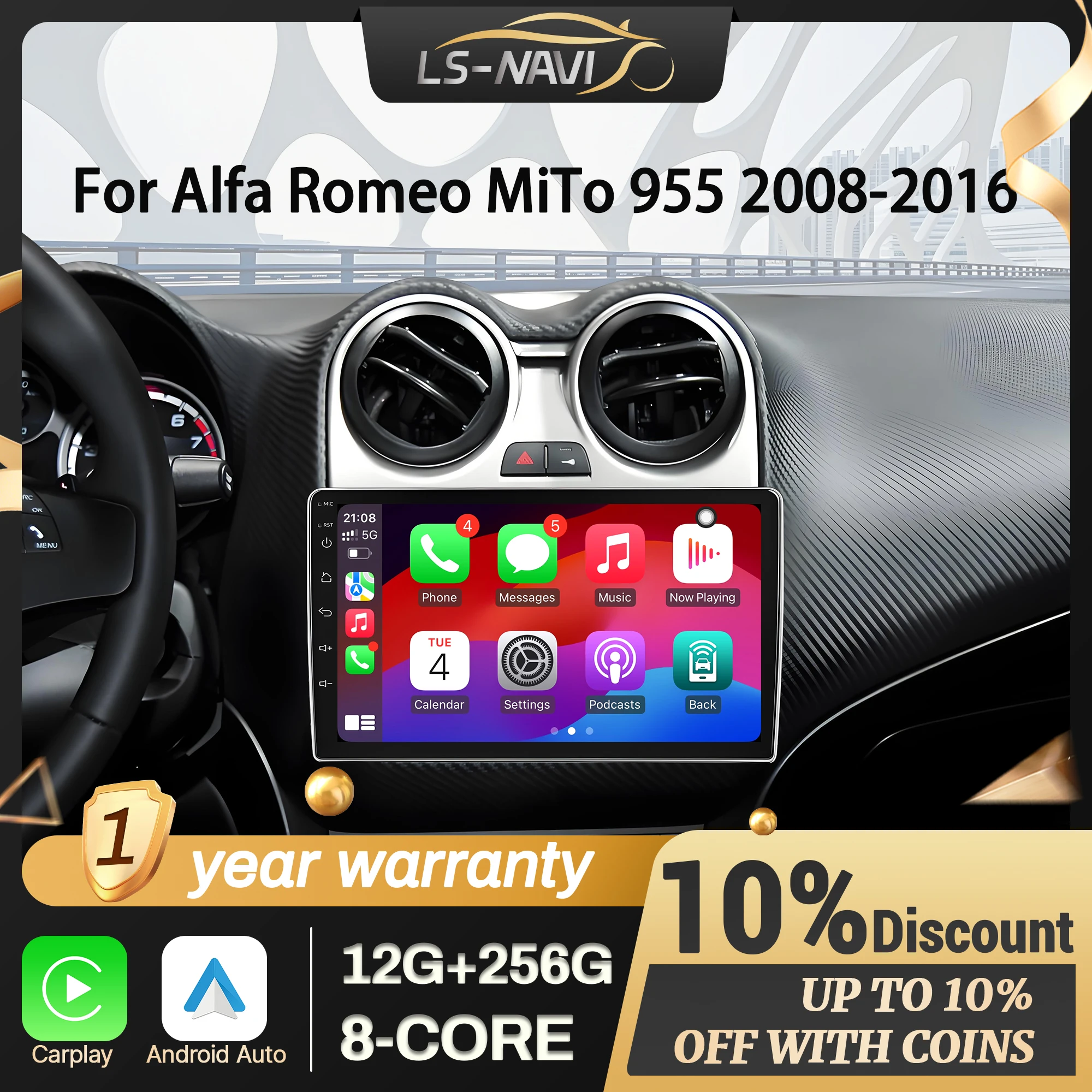 Car Radio Multimedia For Alfa Romeo MiTo 955 2008-2016 Wireless CarPlay Navigation GPS Android 14 2K QLED Screen