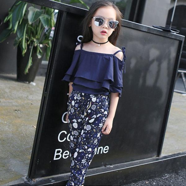toddler kids baby girl summer clothes outfits off shoulder t-shirt +floral pants set baby girl summer outfits off shoulder, White