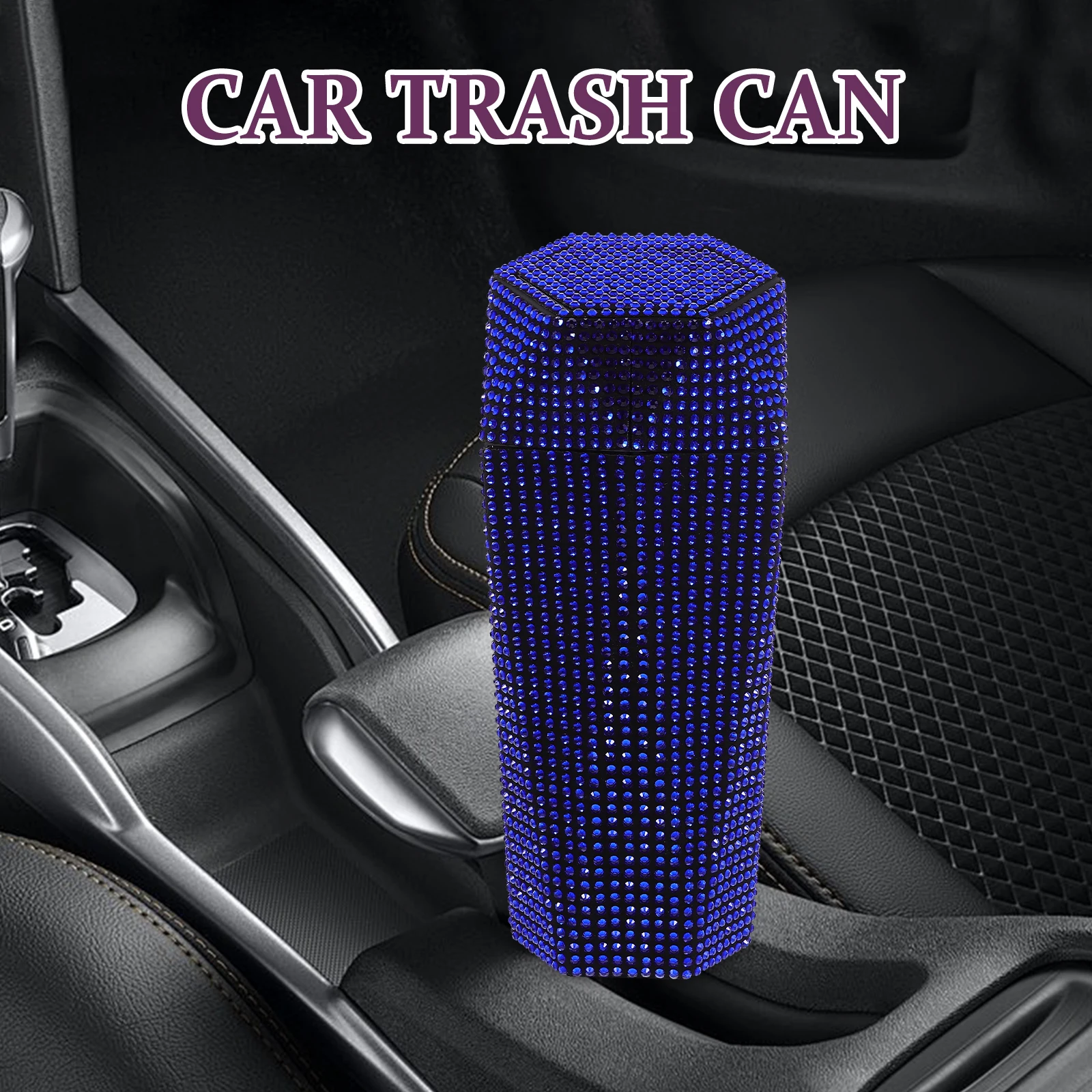 Car Trash Can Compact Rhinestone Design Multi Compartment Leakproof Auto Garbage Bin For Cup Holder Vehicle Storage