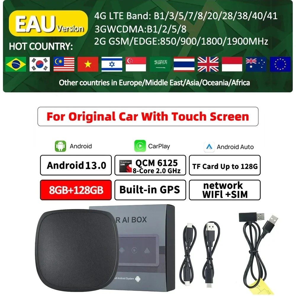 CarAiBOX CarPlay Ai Box Qualcomm 6125 8-ядерный процессор Android 13.0 беспроводной CarPlay Android auto для OEM автомобиля встроенный проводной CarPlay
