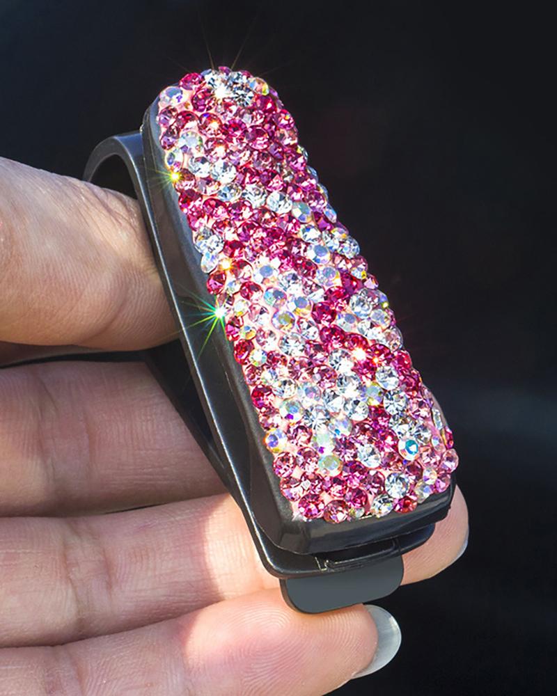 Card Sun Visor Fastener Eyeglasses Clip Frame Receipt Storage Rhinestone Sunglass Protector, Purple