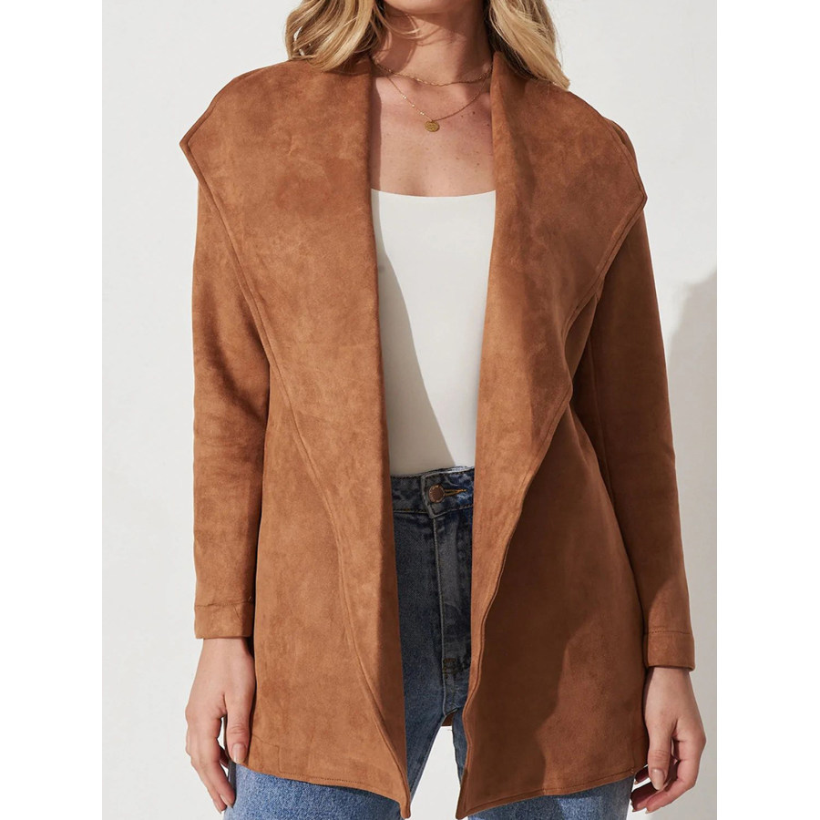 Cardigan Rétro à Manches Longues En Daim à Grand Revers Pour Femme
