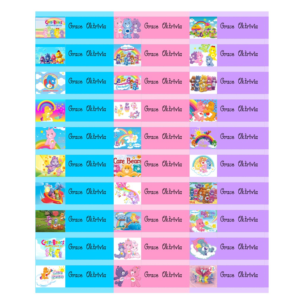 Care Bears - Sticker Label Nama Karakter