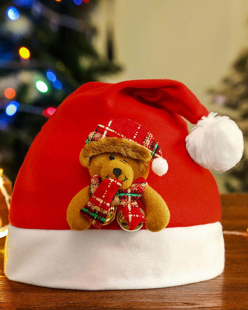 Cartoon Bear Pattern Pom Pom Christmas Hat, Style2