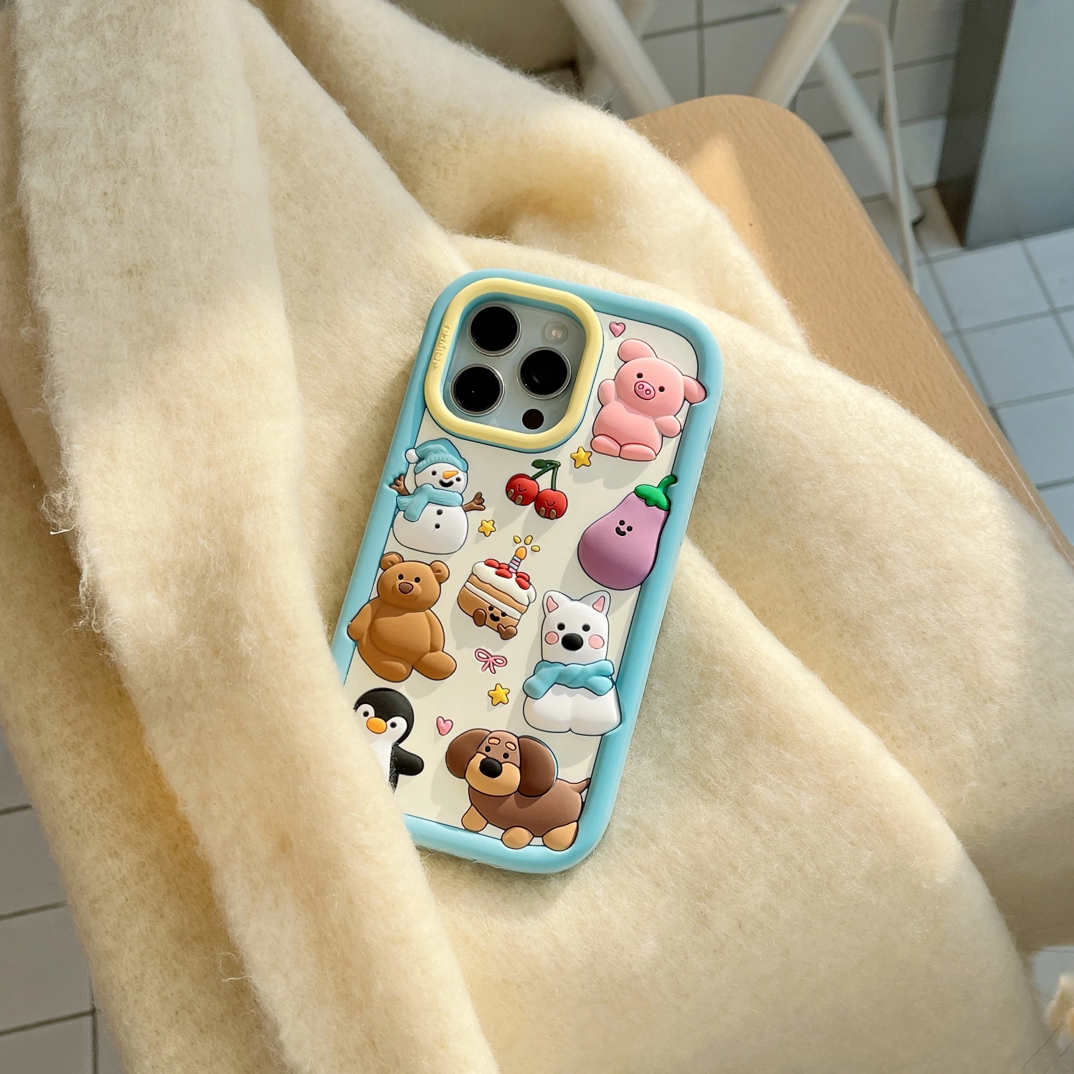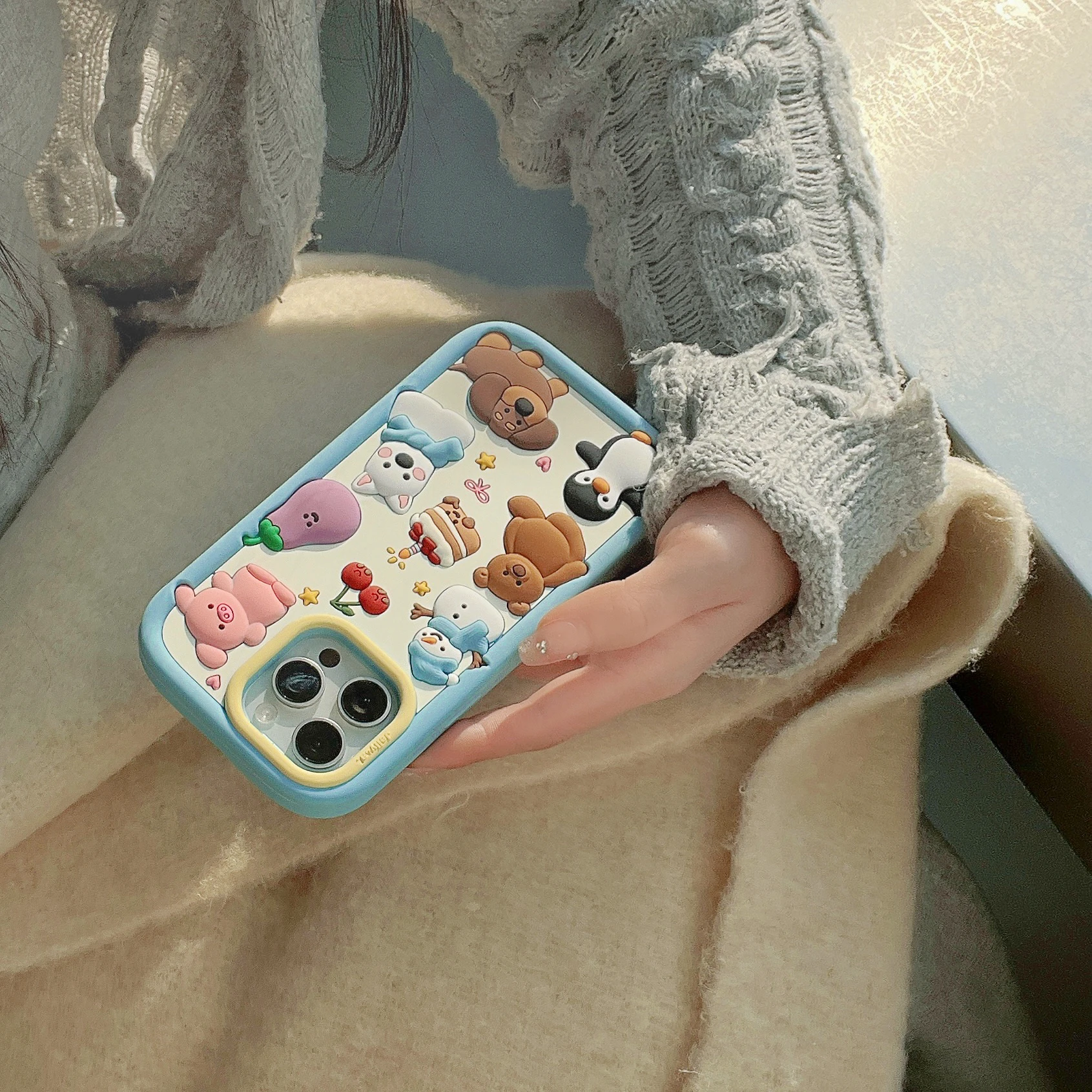 Cartoon Cute Animal Collection Silicon Protective Shockproof Mobile Phone Cover Case For iPhone 12 13 14 15 16 Pro Max Plus