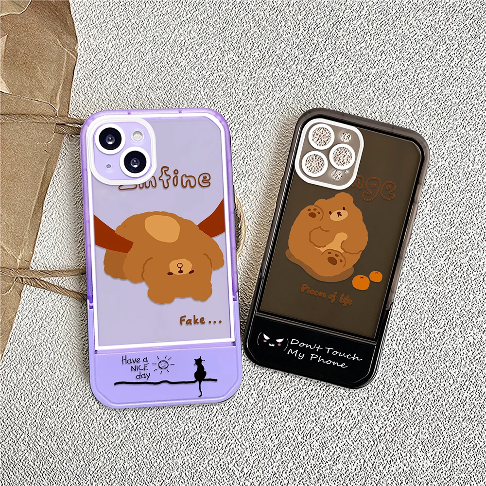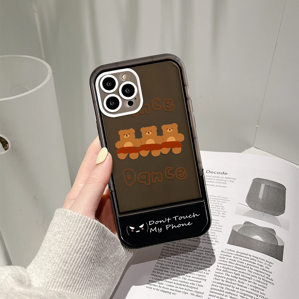 Cartoon Cute Bear Stand Holder Case for iPhone 14ProMax 14Plus 13 12 11 Pro Max Soft Cover Luxury Transparent Protection Shell