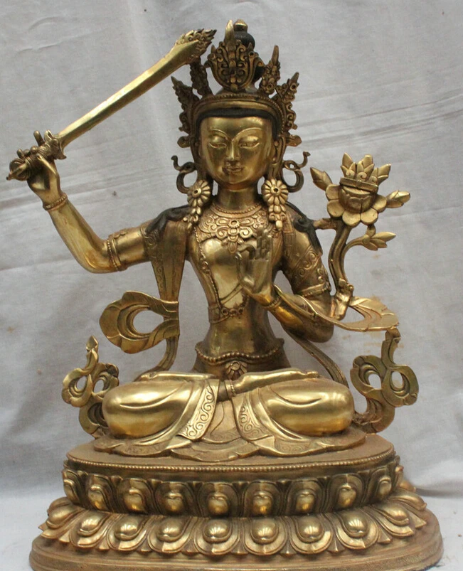 USPS to USA S2132 18" Tibet Tibetan Temple Bronze Gilt Manjushri Wen Shu Bodhisattva Buddha Statue (B0328)