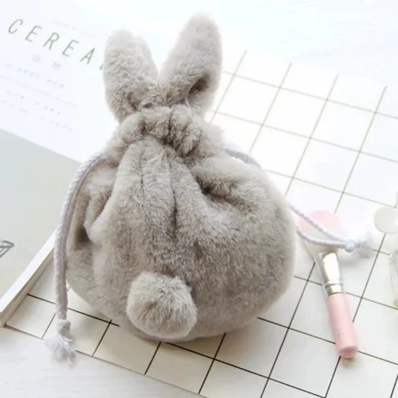 Cartoon Plush Storage Bag, Cosmetic Bag, Rabbit Ear Drawstring Bag, Mobile Phone Bag, Coin Purse, Multi-Functional Storage Bag