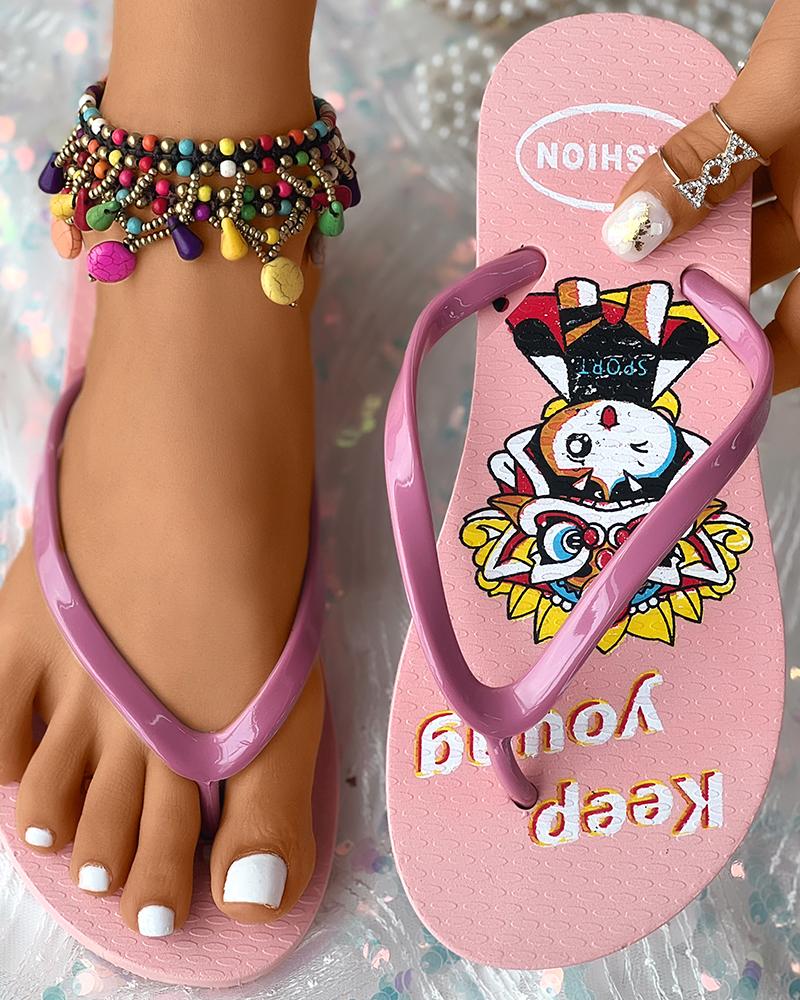 Cartoon Print Non Slip Toe Post Flip Flops, Pink