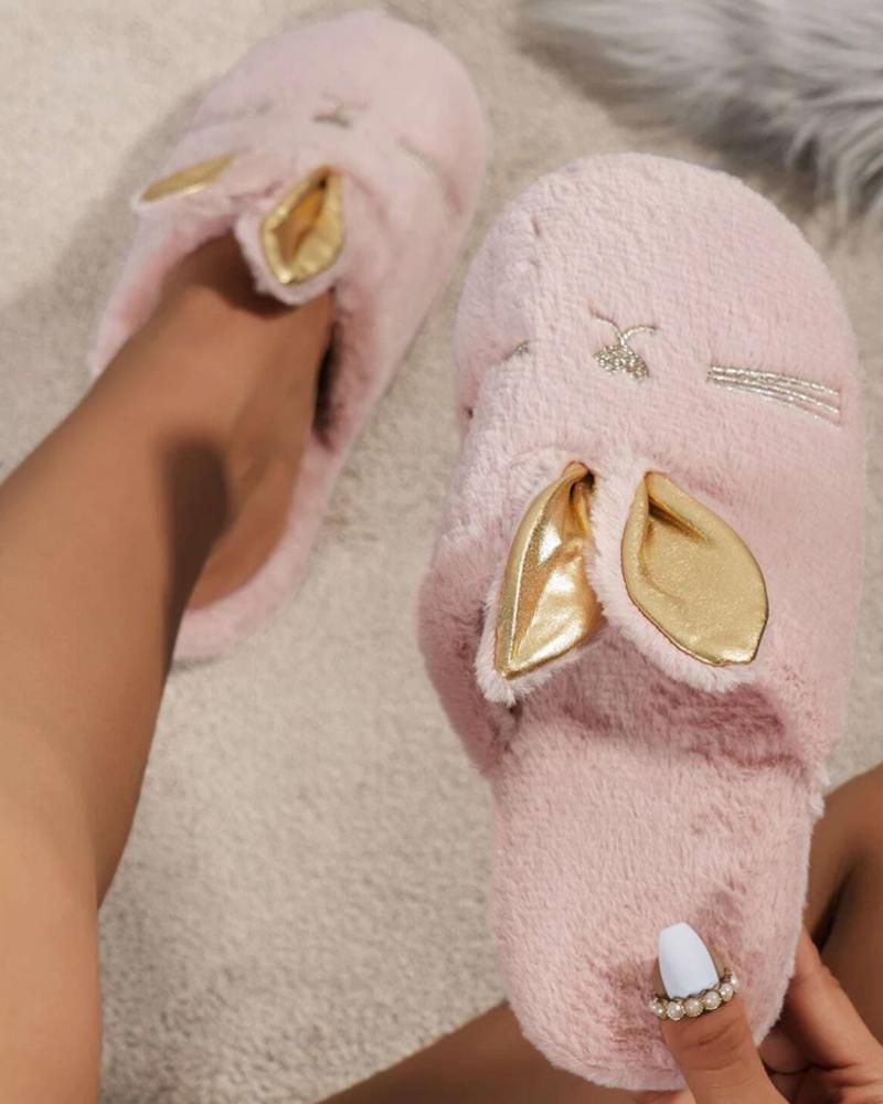Cartoon Rabbit Fuzzy Slippers, Light pink