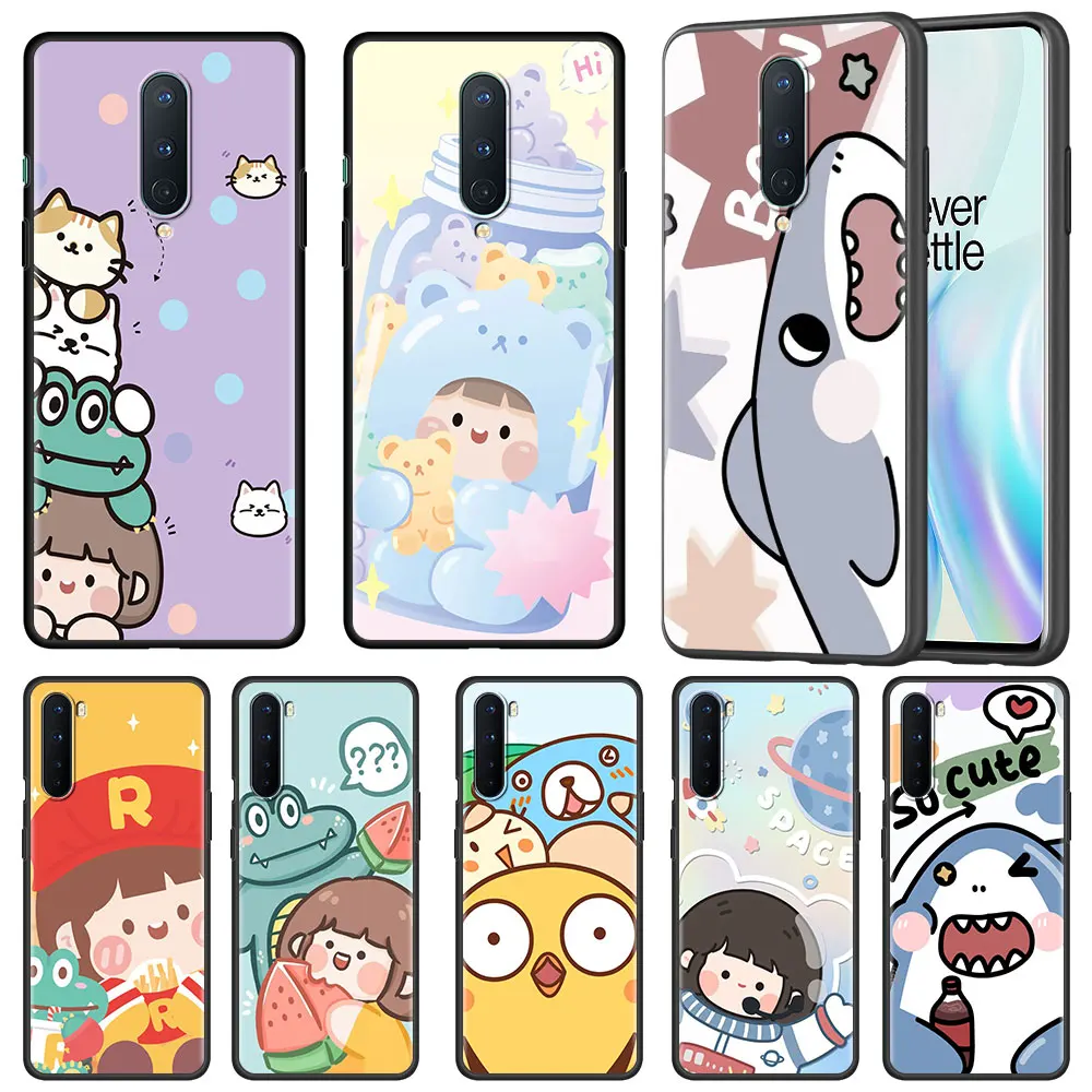 Cartoon Shark Girl Fitted Case For OnePlus 8T 8 Nord N10 9 7 Pro 9R N100 N200 6 6T 7T Nord CE 2 5G Tpu Soft Phone Cover