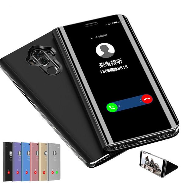 Покрынное Зеркало Искусственная Кожа Анти-Шок Флип Случай Мобильного Телефона Для Huawei
