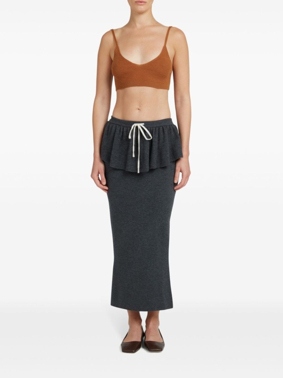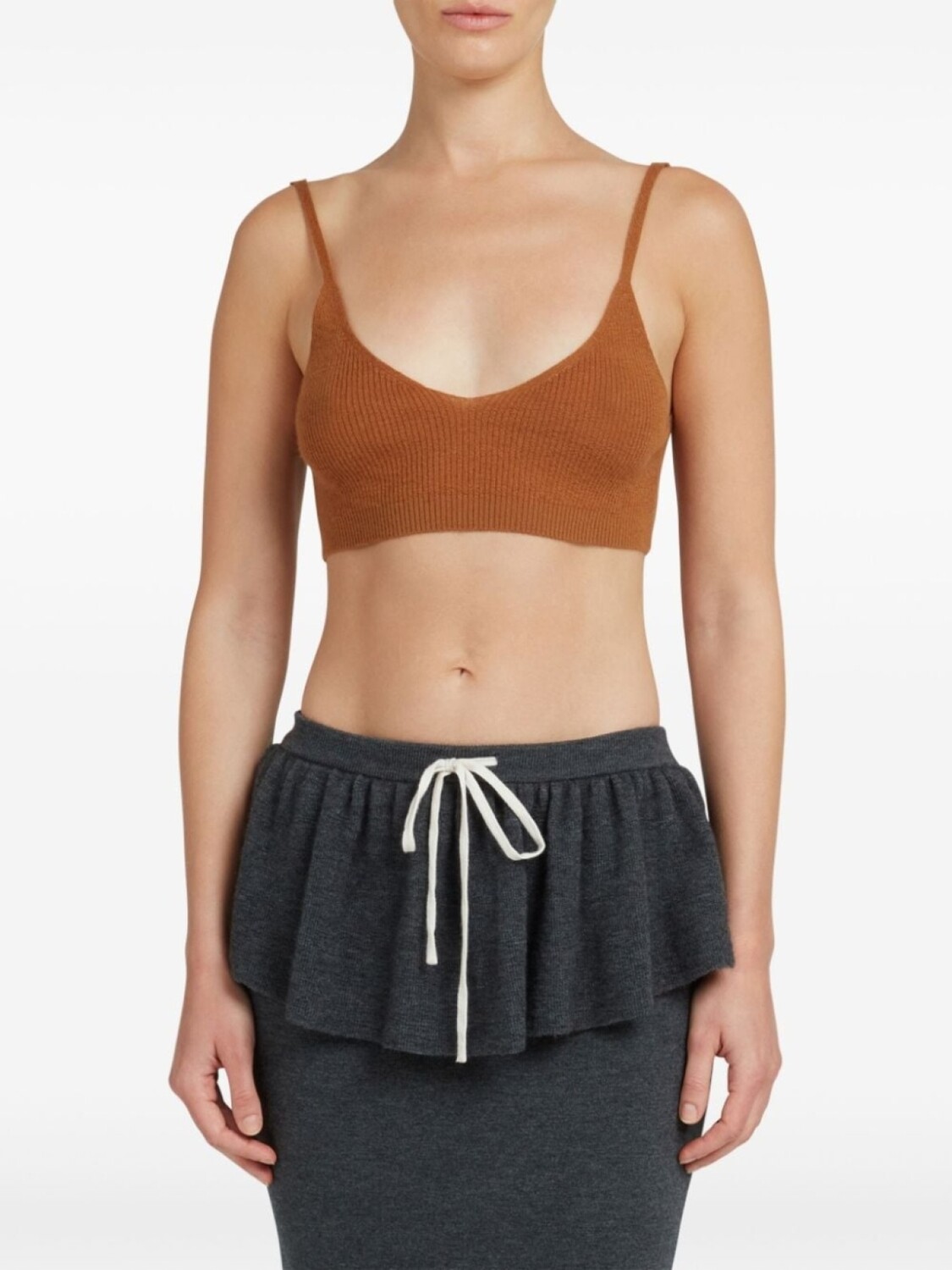 Подробнее о товаре: • коричневый • смесь шерсти и кашемира • трикотаж в рубчик • модель без застежки • узкие бретели • V-образный вырез • прямой подол • укороченная длина