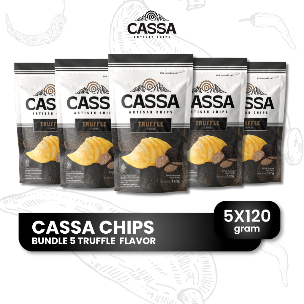 Cassa Chips Truffle merupakan camilan singkong artisan lokal yang diolah dengan teknik khusus, sehingga menghasilkan tekstur unik (tidak nusuk) dan less oily.