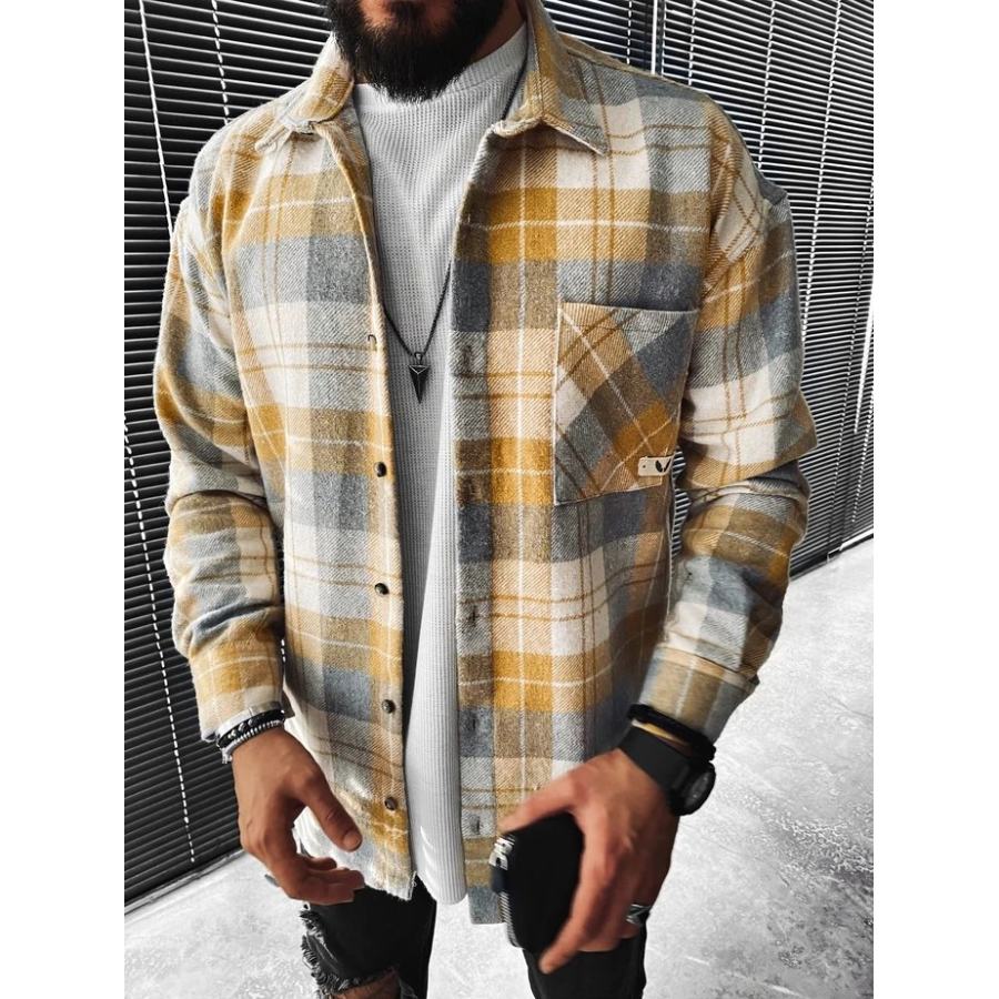 shirt jacs,casual check textured long sleeve jacket