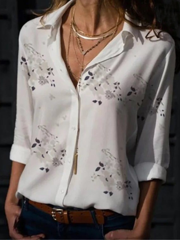 Casual Floral Print Button-up Blouse