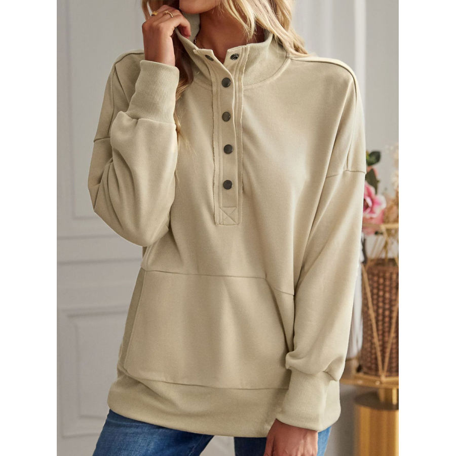 Casual Loose Solid Color Stitching Turtleneck Button Sweatshirt