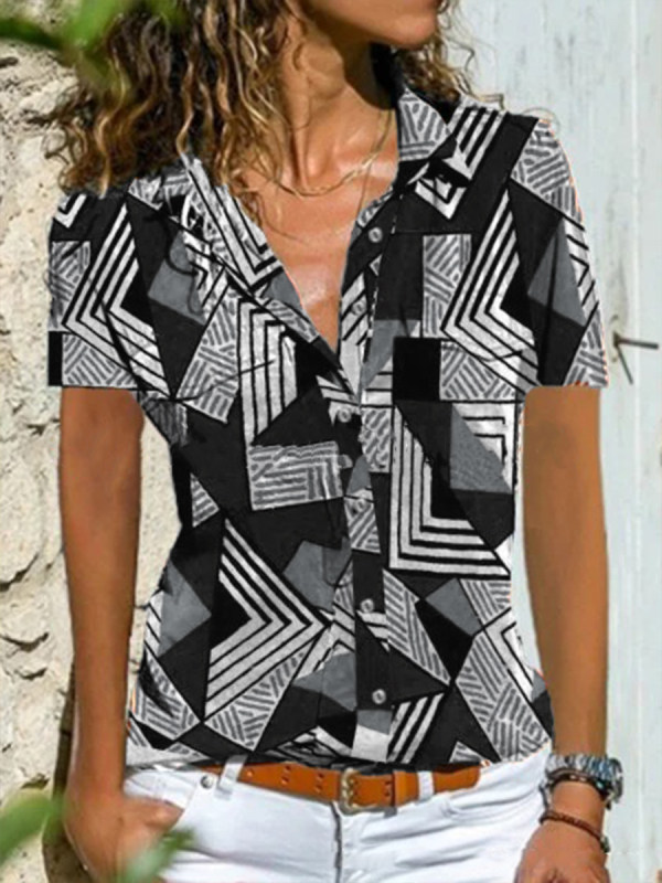 blouses,casual printed short-sleeved shirt
