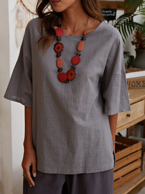 blouses,casual round neck solid color blouse