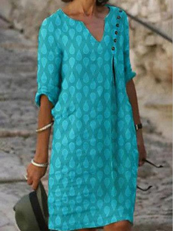 Casual Solid Color Button Dress