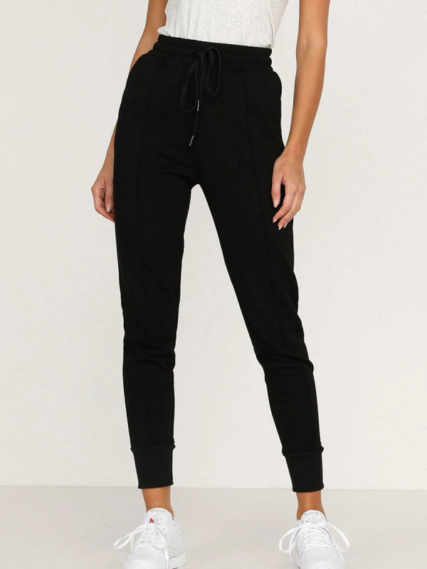casual pants,casual solid color cotton elastic waist drawstring pants