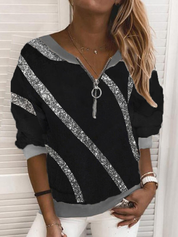 Casual Zipper Sequin Sweatershirt