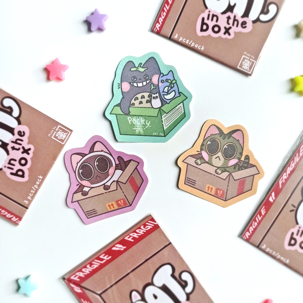 Cat In The Box Gacha Kucing Random Sticker Glitter 1 pcs isi 3 Sticker